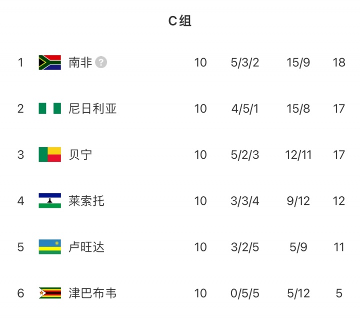 10月15日讯 世预赛非洲区小组赛C组,南非3-0战胜卢旺达,锁定小组第1,直通2026世界杯赛 !