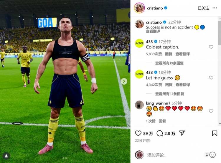 - 传射建功!C罗社媒晒照庆祝获胜 :成功绝非偶然🟡🔵