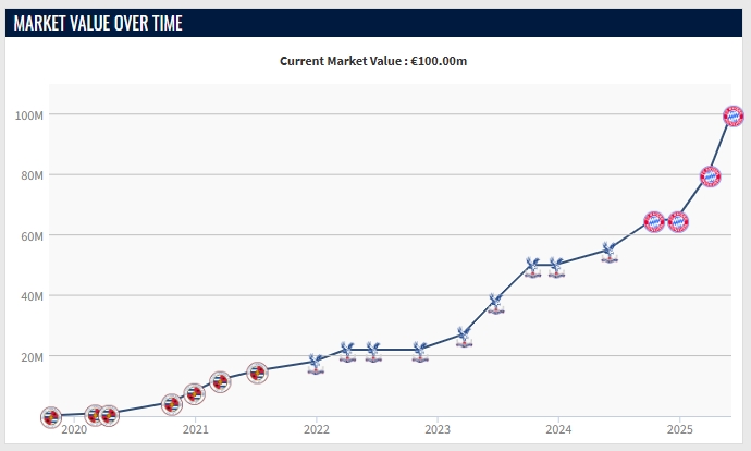 去年夏窗,拜仁花费5300万欧从水晶宫签下奥利塞,欧洲杯直播当时奥利塞身价5500万欧。
