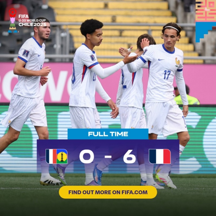 - 世青赛法国6-0大胜新喀里多尼亚,排名小组第三晋级下一轮 16强