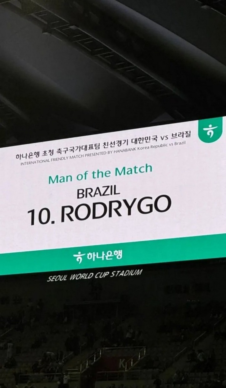 - 连进两球,罗德里戈当选巴西5-0韩国全场最佳球员