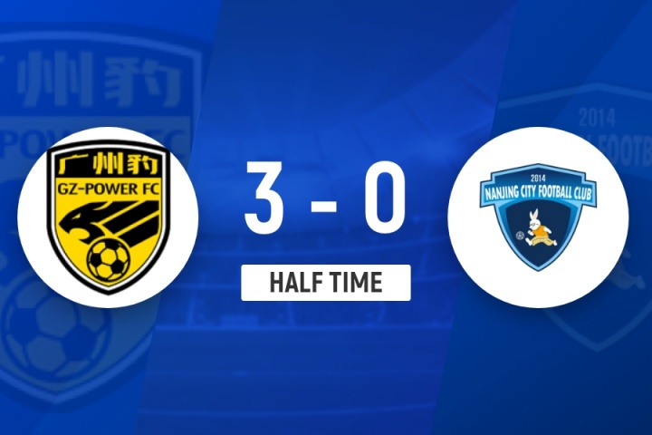 - 半场-广州豹暂3-0南京城市 尼康1射2传罗萨贴地斩韩轩顶球破门